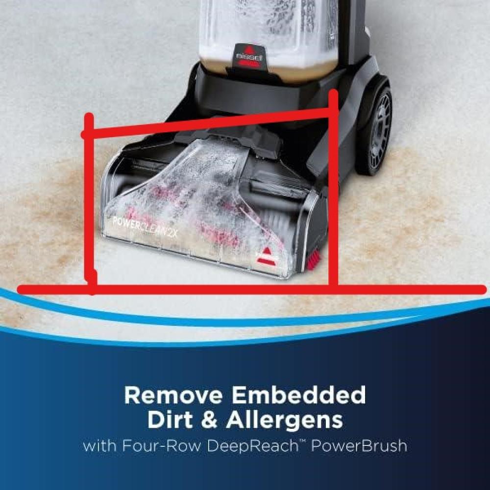 نافذة الشفط لمكنسة بيسل لغسيل وتنظيف السجاد تسحب الاوساخ والماء من السجاد تكون ملتصقة بالأرض بشكل مباشر، النافذة تأتي شفافة وبمنفذ اللي